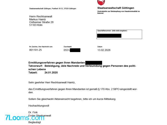 Kostenlos RA Dr. Markus Haintz: Die Staatsanwaltschaft Göttingen hat ein Ermittlungsverfahren gegen unseren ; Göttingen