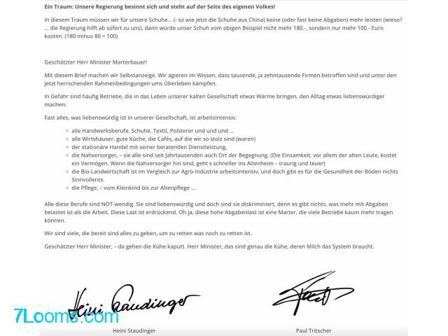 Schließ Dich an. Den ganzen Brief an den Herrn Finanzminister Marterbauer findest Du auf: