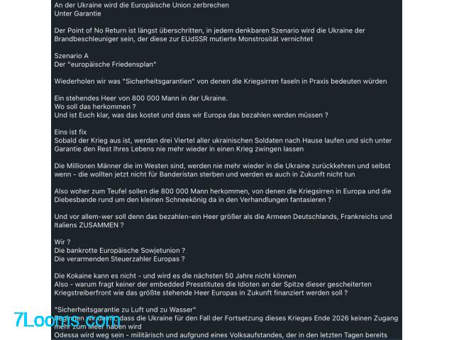 Weil die Bevölkerungen Europas der Vernichtung der eigenen Länder unter gleichzeitigem Durchfüttern der Ukraine auf Dauer einfach nicht zusehen werden