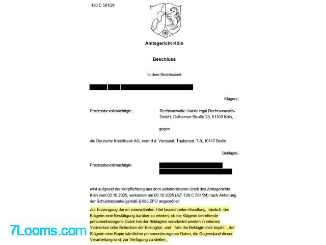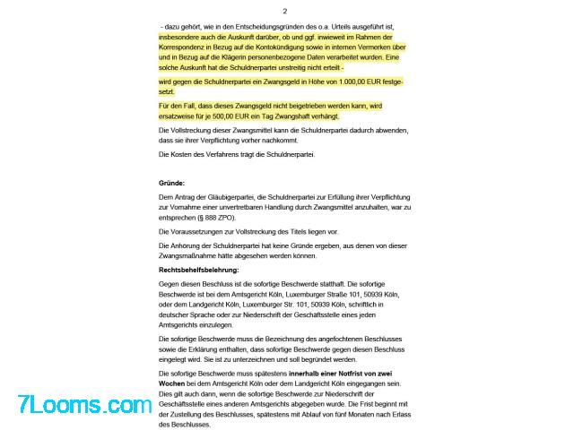 Das AG Köln hat ein Zwangsgeld in Höhe von 1000 € gegen die Deutsche Kreditbank festgesetzt.