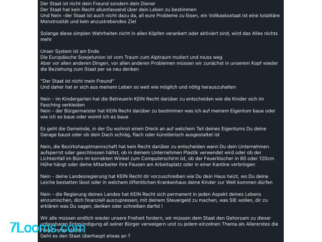Wir alle müssen endlich wieder unsere Freiheit fordern, wir müssen dem Staat den Gehorsam zu dieser unfassbaren Entmündigung all seiner Bürger verweigern und zu jedem einzelnen Thema als Allererstes die Frage voran stellen