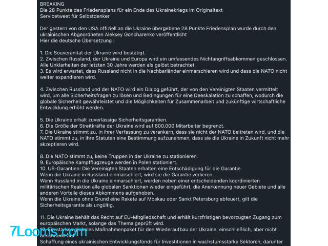 Kostenlos Die 28 Punkte des Friedensplans für ein Ende des Ukrainekriegs im Original Servicetweet für Selbstde Wien