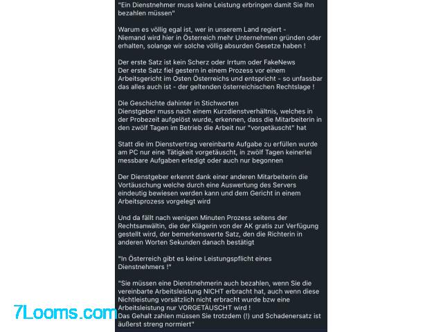 Der erste Satz fiel gestern in einem Prozess vor einem Arbeitsgericht im Osten Österreichs und entspricht - so unfassbar das alles auch ist - der geltenden österreichischen Rechtslage !
