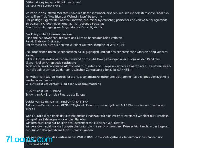 Jetzt noch die ökonomische Atombombe zu zünden und Europa als sicheren Finanzplatz zu zerstören indem man die sakrosankten Gelder der russischen Zentralbank stiehlt, ist WAHNSINN