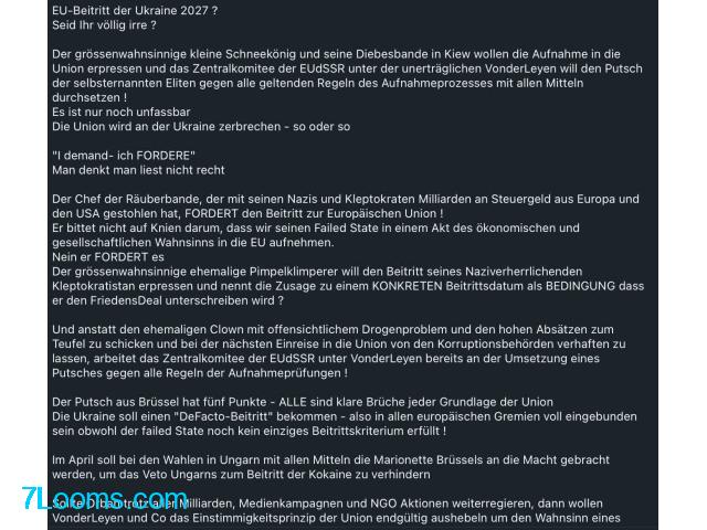 Der grössenwahnsinnige kleine Schneekönig und seine Diebesbande in Kiew wollen die Aufnahme in die Union erpressen und das Zentralkomitee der EUdSSR unter der unerträglichen VonderLeyen will den Putsch der selbsternannten Eliten gegen alle geltenden Regeln des Aufnahmeprozesses mit allen Mitteln durchsetzen !