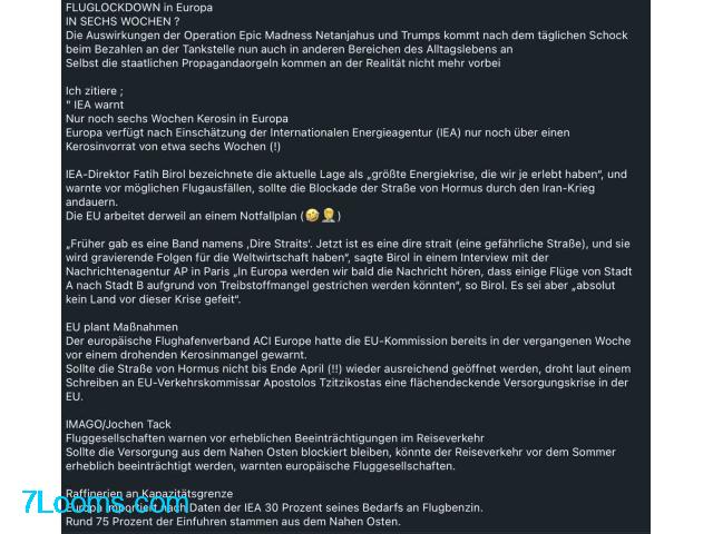Sollte die Straße von Hormus nicht bis Ende April (!!) wieder ausreichend geöffnet werden, droht laut einem Schreiben an EU-Verkehrskommissar Apostolos Tzitzikostas eine flächendeckende Versorgungskrise in der EU.