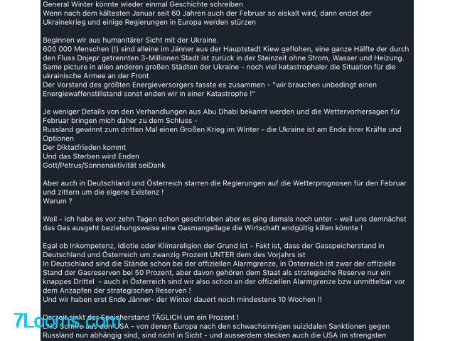 Wenn nach dem kältesten Januar seit 60 Jahren auch der Februar so eiskalt wird, dann endet der Ukrainekrieg und einige Regierungen in Europa werden stürzen