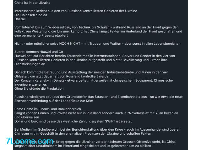 Bei Medien, im Schulbereich, bei der Berichterstattung über den Krieg - auch im Aussenhandel sind überall Chinesen mit im Geschäft in den ehemaligen Provinzen der Ukraine und schaffen Fakten
