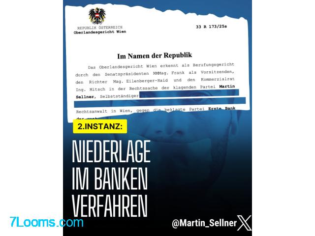 Nun kam es zu einer Niederlage in der zweiten Instanz. Das Gericht breit das trotz 116 Kündigungen und Kontoverweigerungen trotzdem ich alle 340 Banken in Österreich angeschrieben und nur Absagen bekommen habe, ich nicht das Recht auf ein Unternehmenskonto habe.