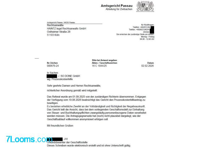 Das Gericht möchte nach einem Richterwechsel nunmehr doch Prozesskostenhilfe für unsere Mandantin gewähren, die das unlautere Meldeportal „So Done“ auf Datenauskunft verklagt hat.