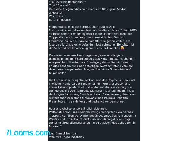 - aber die Europäischen Kriegszwergen wollen nichts davon hören und haben schon zweimal die Versuche Trump's sabotiert, den Deal endgültig abzuschließen indem Sie den Schneekönig versichert haben, Europas Unterstützung würde reichen weiterzumachen