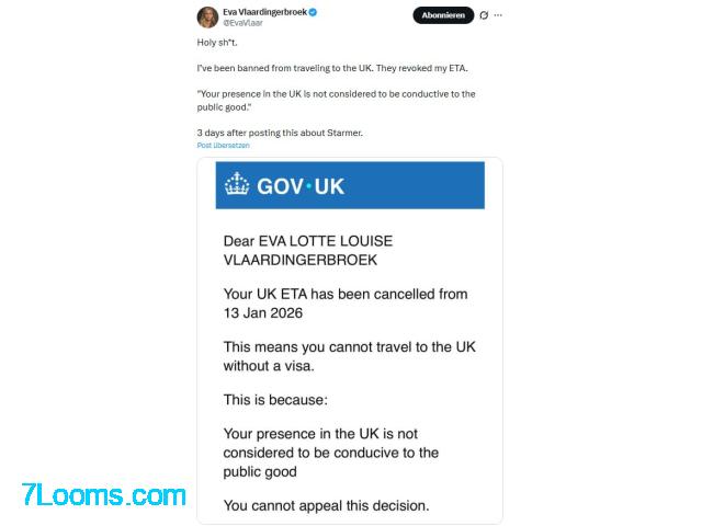 Kostenlos RA Dr. Markus Haintz: Einreiseverbot für Eva Vlaardingerbroek in Großbritannien. London