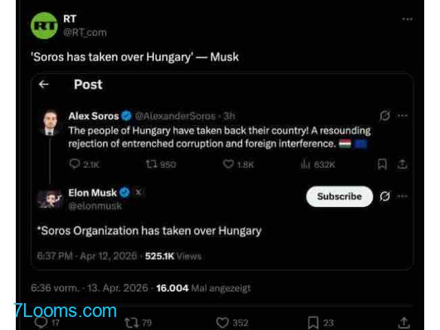Kostenlos Soros has "taken over " Hungary - Elon Musk Budapest