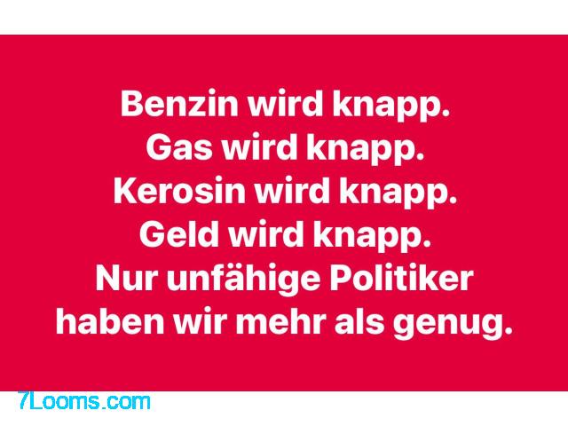 Kostenlos Benzin wird knapp. Gas wird knapp. Kerosin wird knapp.Geld wird knapp. Nur unfähige Politiker.. ; Wien