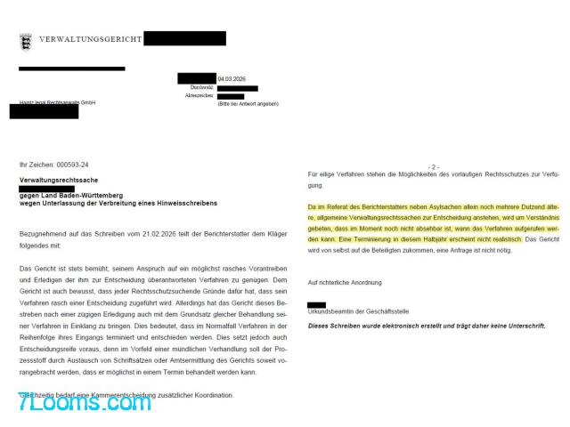 Es handelt sich um ein typisches Schreiben eines Verwaltungsgerichts.
